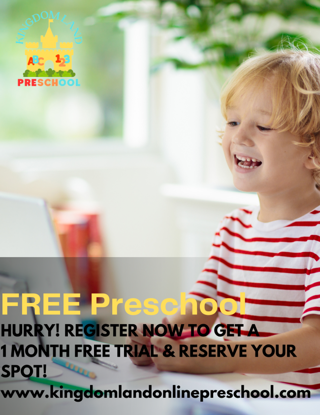 At Kingdom Land Preschool, we partner with families to provide academically, engaging classes where kids can have fun and accelerate their learning socially, emotionally, cognitively, linguistically, physically and spiritually… all while being healthy & safe in the comfort of your own home!