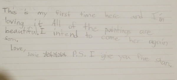 Another wonderful aspect of The Hyde Collection is that it's a completely manageable scale for younger museum visitors. It's easy to navigate and will leave visitors wanting more. In fact, as my husband and older daughter headed out the door, I was waiting for my eight-year-old to finish signing the guest book: