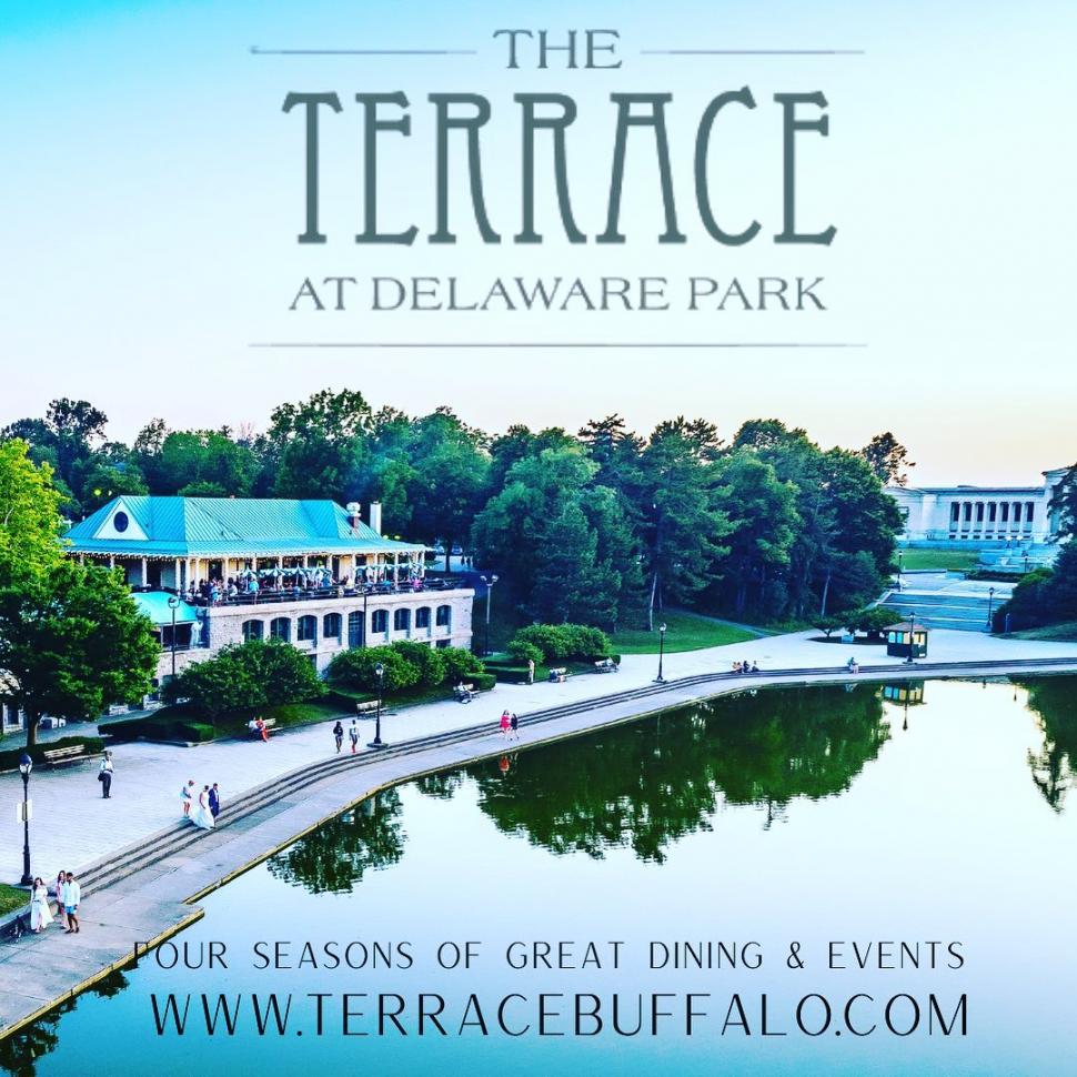 Two story historic building overlooking Hoyt Lake, Delaware Park, Albright-Knox Gallery and the Buffalo and Erie County Historical Society. Buffalo's premier Venue for year round Dining, Music, Events, Weddings & Social Gatherings. Well known for having Buffalo's best patio, with panoramic views of Hoyt Lake, Delaware Park, Buffalo History Museum, Albright Knox Art Gallery and incredible sunsets. Guests will feel comfortable stopping in after a walk in the park, or dressed to impress. Our menu and atmosphere are designed to be both approachable and upscale, with a focus on appealing to the entire community. The Terrace is famous for our Sunday Jazz Brunch and other live music events.